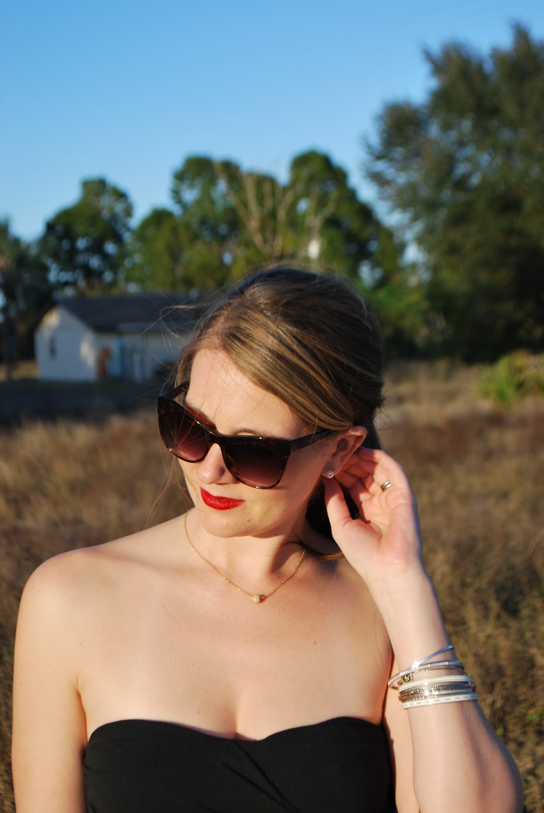 I wore this casual, comfortable black strapless dress almost everyday while in Ft Myers. My bag is a hand-me-down from my great grandmother which she got in Mexico in 1971. It's my favorite. And the shoes? You'll have to wait to Friday to hear more about those...